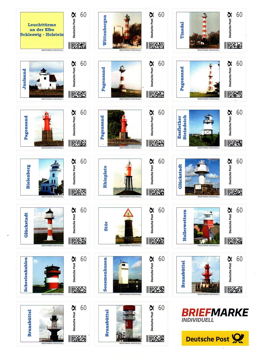 B011 Leuchttürme an der Elbe - Schleswig-Holstein Brunsbüttel, Scheelenkuhlen, Glückstadt, Bielenberg, Pagensand, Juelsand, Brunsbüttel, Soesmenhusen, Stör, Rhinplate, Pagensand, Pagensand, Wittenbergen, Brunsbüttel, Hollerwettern, Glückstadt, Essflether Steindeich, Pagensand , Tinsdal |