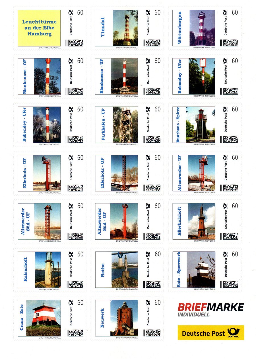 B012 Leuchttürme an der Elbe - Hamburg Craaz - Este, Kaiserhöft, Atenwerder Süd - UF, Ellerholz - UF, Bubendey Ufer, Blankenese OF, Neuwerk, Rethe, Atenwerder Süd OF, Ellerholz OF, Parkhafen UF, Blankenese UF, Tinsdal, Este - Sperrwerk, Ellerholzhöft, Atenwerder UF, Bunthaus Spitze, Bubendey - Ufer, Wittenbergen |